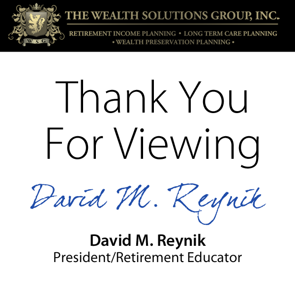 By watching this video, you may be at some point in the future be solicited for a no cost, no obligation one on one appointment to discuss what your financial goals maybe. Dave Reynik a 30 year veteran to the financial services industry and a licensed insurance professional with a focus on retirement planning by using insurance and annuity related products will most likely be that person contacting you.